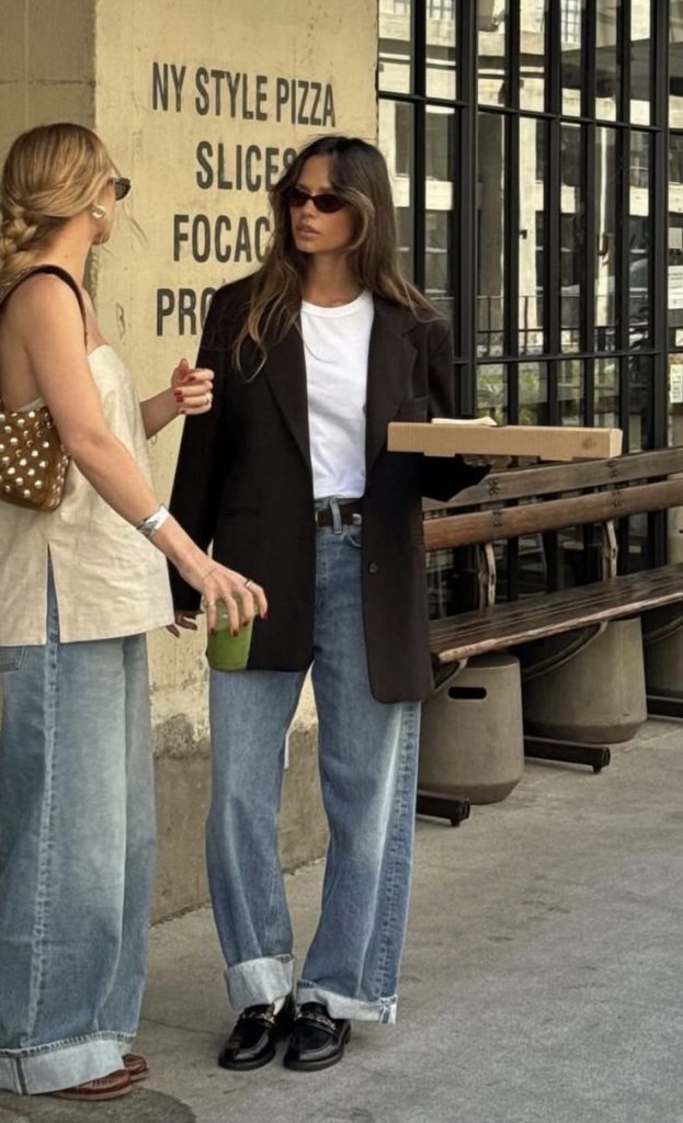 1) Blazer + Top + Straight Jeans + Loafer